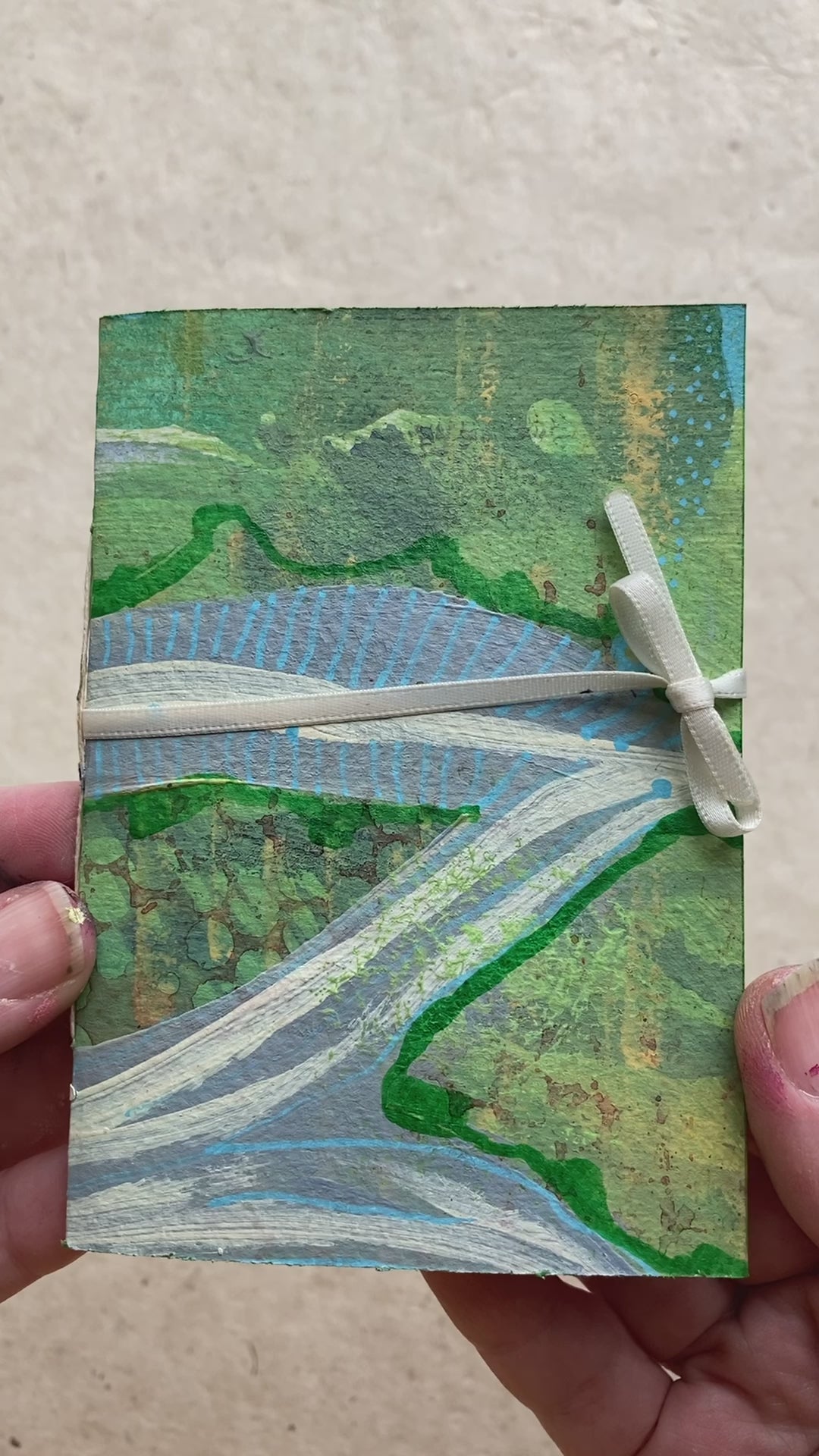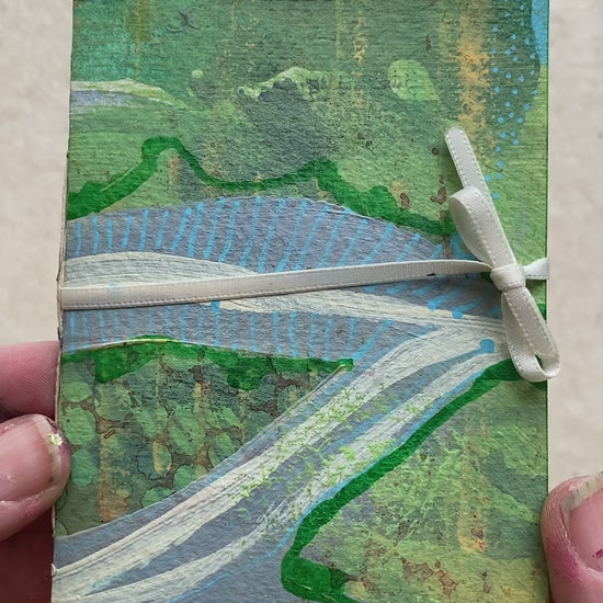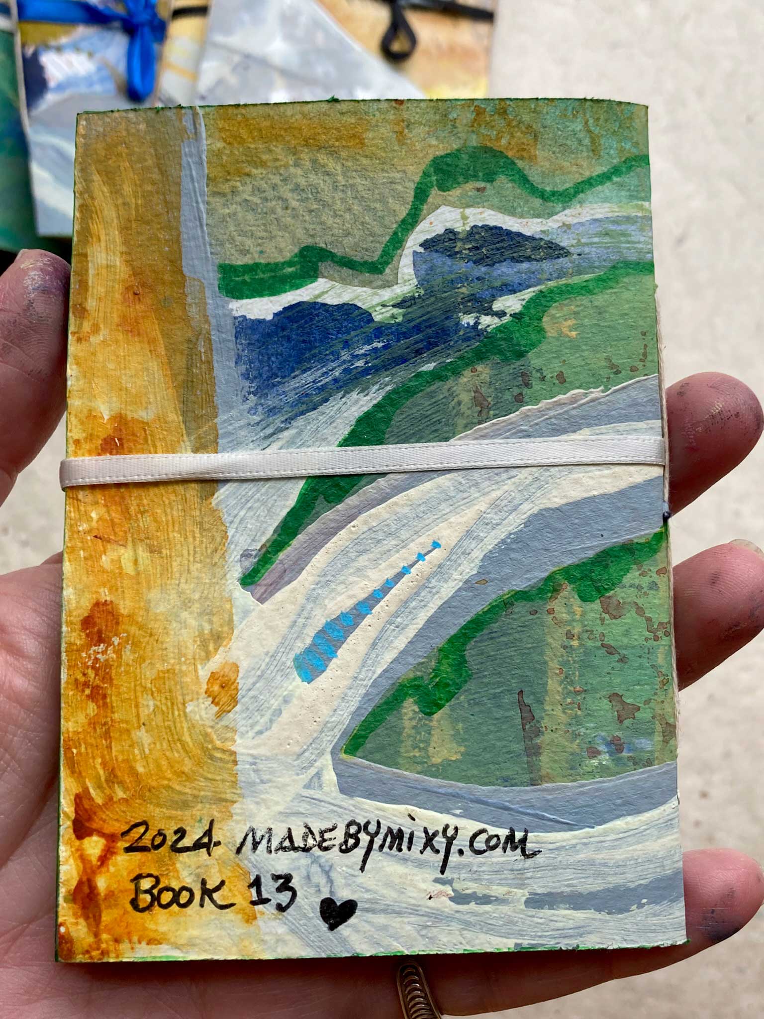 Unique handmade book, made from painted found papers, recycled art works, and love.