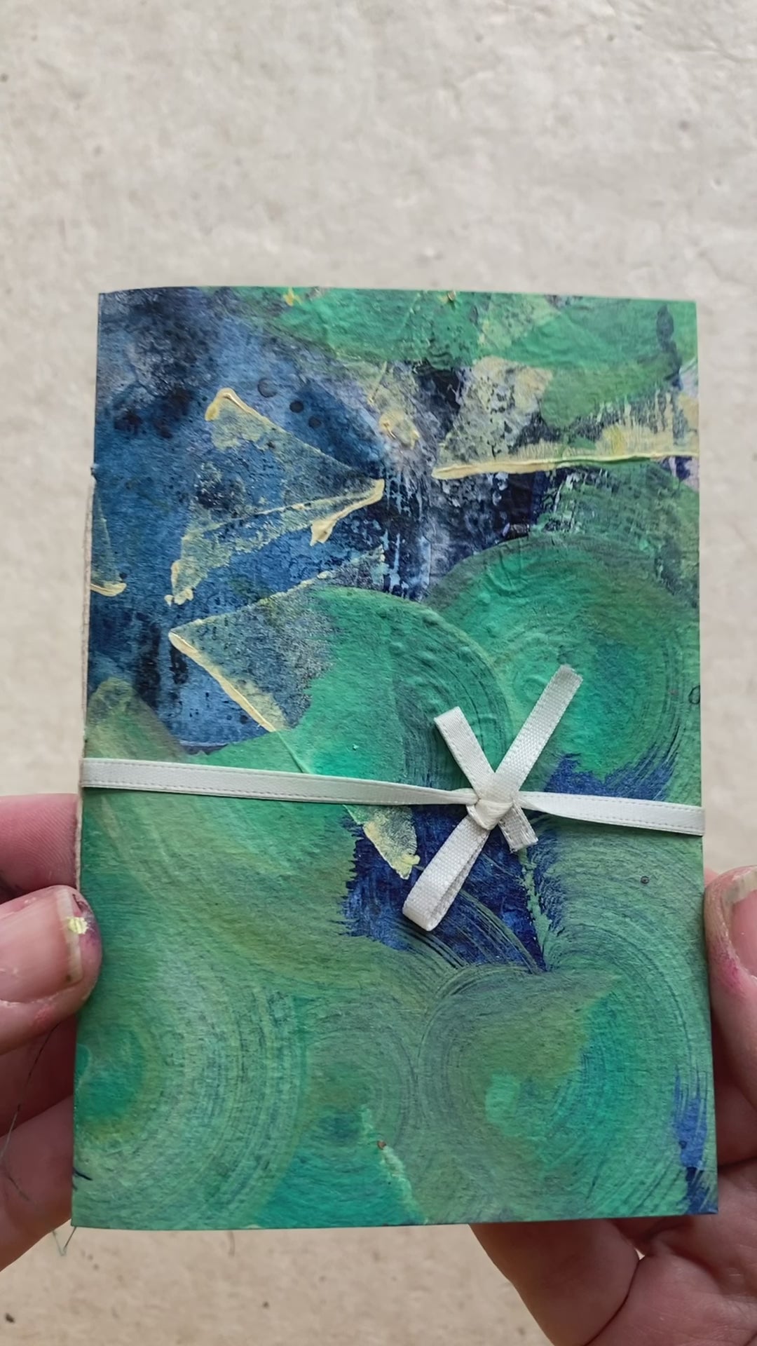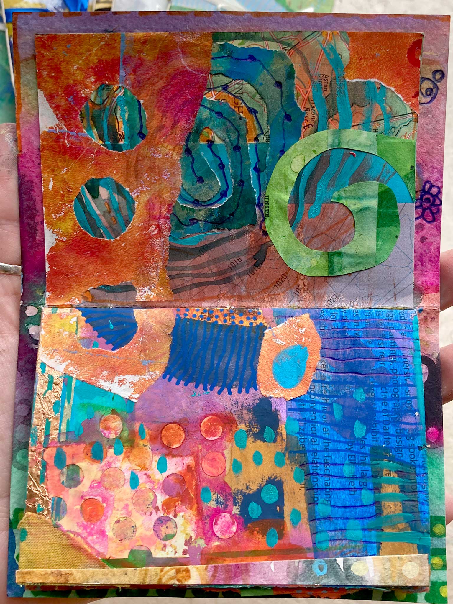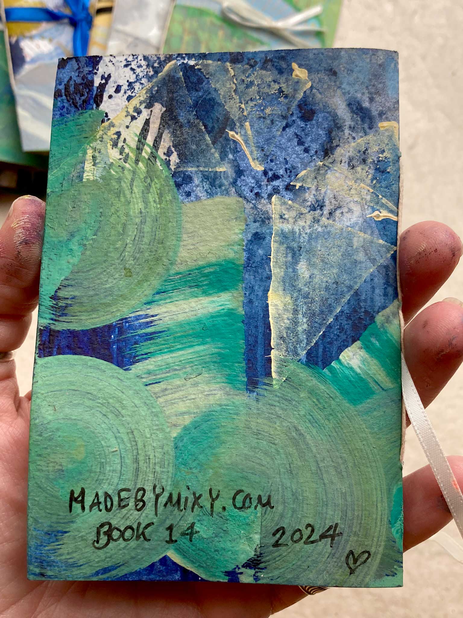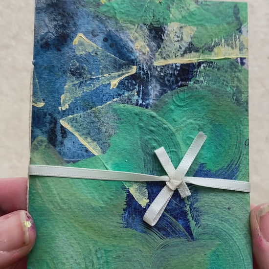 Unique handmade book, made from painted found papers, recycled art works, and love.
